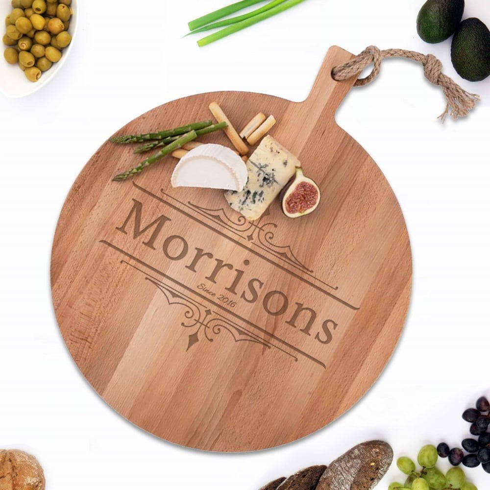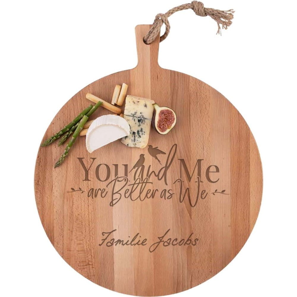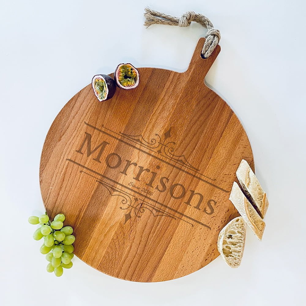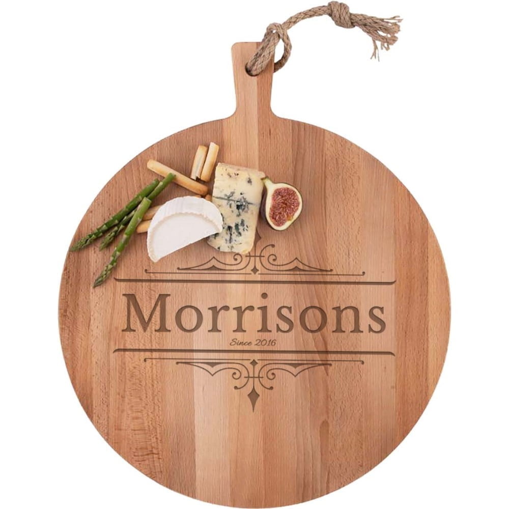 Grote ronde serveerplank met handvat graveren: een blikvanger op tafel