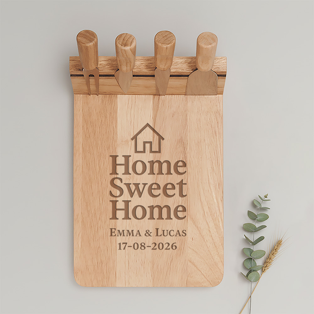 Bij deze kaasplank kun je kiezen voor een gravure met naam, datum, quote of zelfs een logo. Zo maak je elke plank uniek. Je kunt meerdere planken in dezelfde stijl laten maken of juist elk exemplaar voorzien van een andere boodschap. Deze kaasplank wordt geleverd met vier verschillende kaasmessen met houten handvatten, die netjes opgeborgen worden aan de ingebouwde magneetstrip. De mesjes zijn direct zichtbaar dankzij de transparante verpakking, zodat de ontvanger meteen ziet wat hij cadeau krijgt. Wil je het cadeau extra feestelijk presenteren? Kies dan voor een optionele luxe geschenkverpakking. Een persoonlijke wenskaart is standaard gratis inbegrepen.
