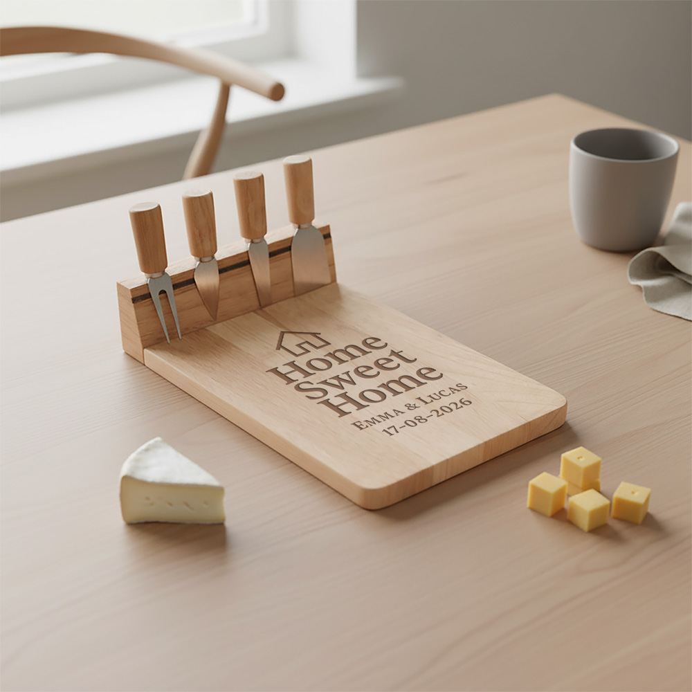 Een gegraveerde kaasplank is meer dan een serveerplank – het is een herinnering die telkens terugkomt bij elk borrelmoment. Dankzij het duurzame hout blijft de gravure mooi zichtbaar en gaat de plank jarenlang mee. Wil je de uitstraling extra goed behouden? Lees dan onze onderhoudstips voor hout, zodat jouw plank er lang prachtig uit blijft zien.