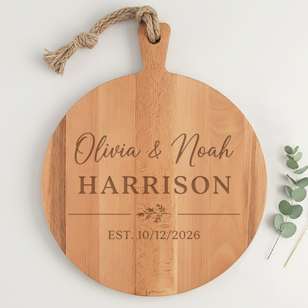 Ontwerp je eigen persoonlijke kaasplank en maak je borrelavonden nog specialer! Deze stijlvolle ronde beukenhouten plank is perfect voor het serveren van kaas, hapjes of als decoratie in je keuken. Personaliseer hem met een naam, quote of afbeelding en geef een uniek cadeau voor een housewarming, verjaardag of jubileum. Deze plank is niet alleen praktisch, maar ook een elegante toevoeging aan elke gelegenheid!