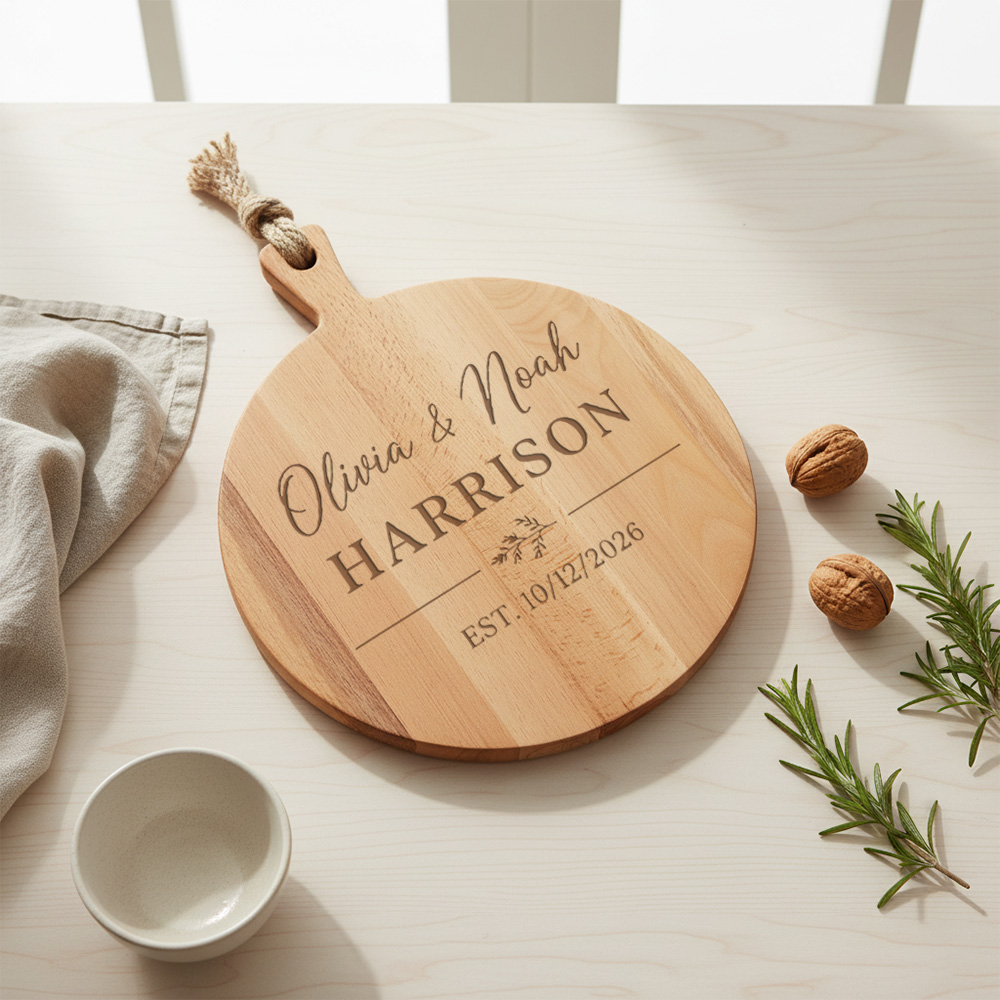 De gravure op beukenhout komt mooi middenbruin naar voren en blijft jarenlang zichtbaar. Zo wordt de plank niet alleen een praktisch gebruiksvoorwerp, maar ook een blijvend aandenken aan een bijzonder moment. Wil je de kwaliteit zo lang mogelijk behouden? Bekijk onze onderhoudstips en geniet extra lang van jouw persoonlijke ontwerp.